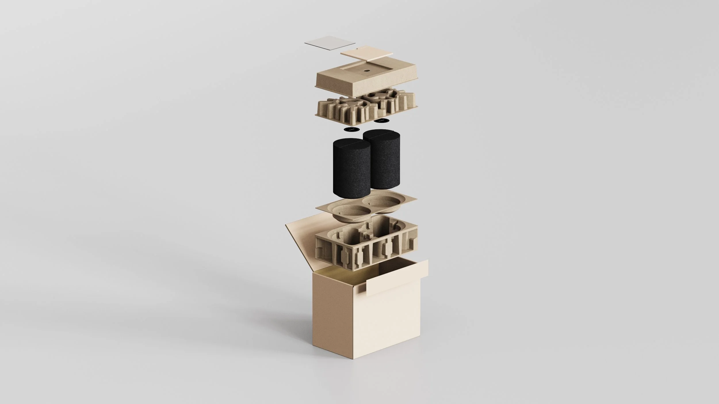 Objective: First Sonos program. Era 100 bundle is a costco exclusive offering, and was a refresh of the existing Sonos One bundle. The goal was to quickly develop a two-pack of era-100 units, while making small improvements where possible. Challenges unique to this program were that the Costco packaging needs to work without overpack. Improvements were also made to the box in the form of a rolled lid for a more premium unboxing experience, and improved device cosmetic tray, and the elimination of adhesive for the cable wraps. This cable improvement was then platformed across the entire Sonos portfolio.