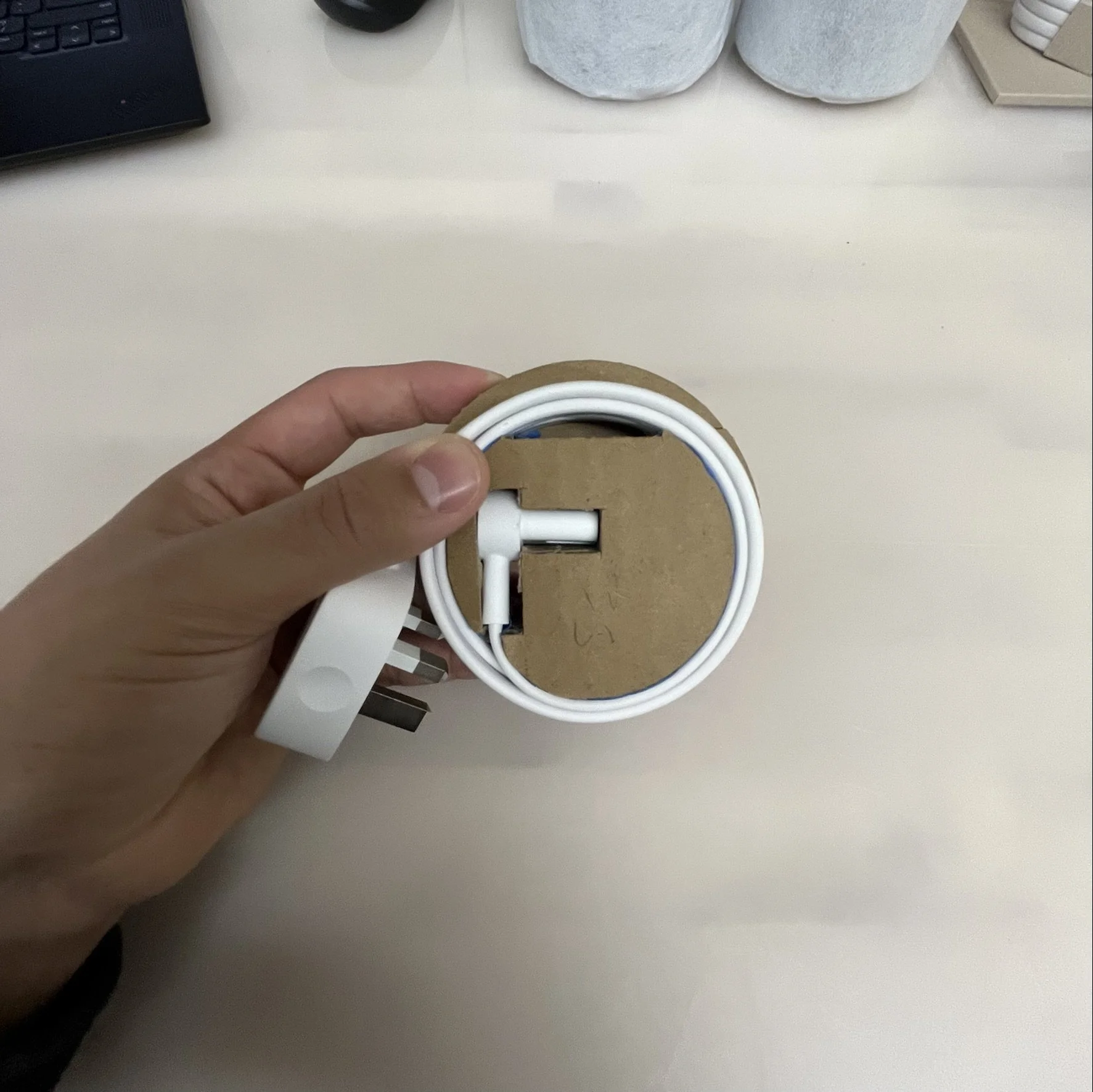 Due to the circular geometry of the device, I explored adding geometry to prevent clocking in-box